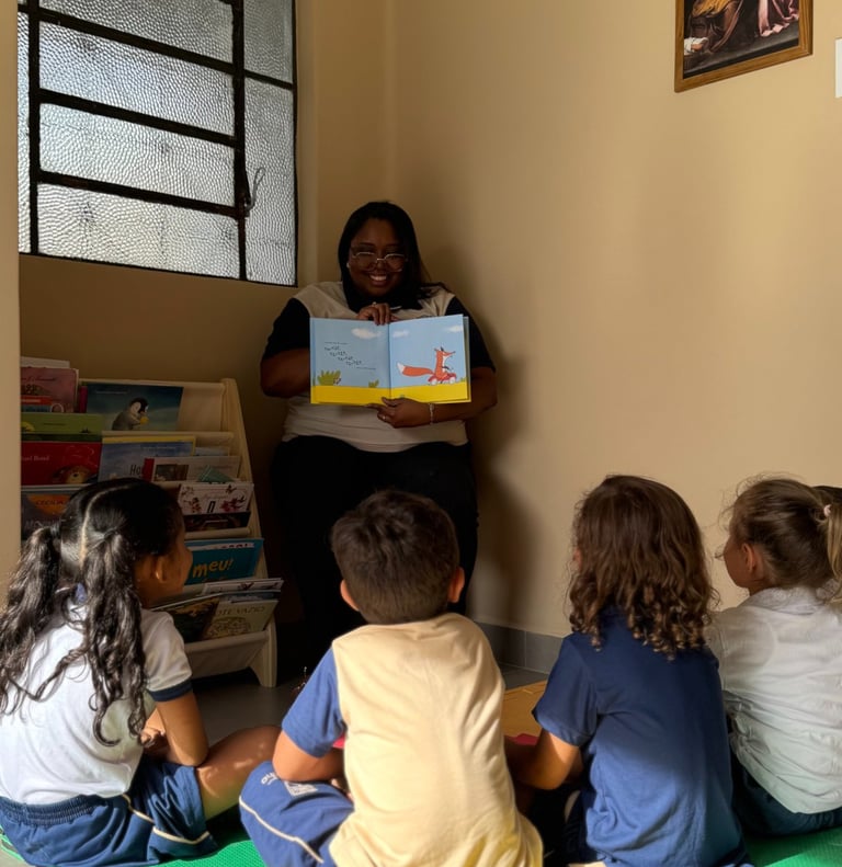 Aulas diárias e lúdicas que estimulam o contato natural com a língua, desenvolvendo escuta, fala e compreensão desde os primeiros anos.